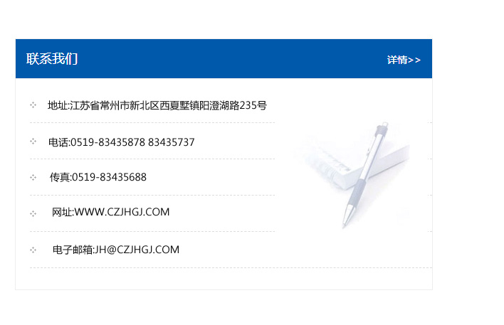 地址:常州市新北區友邦商務大廈1幢16、17層  電話:0519-85101652  傳真:0519-85112595  郵編:213022  網址:www.cz-jiayue_cn.dongmanjixie.com  郵箱:xiajifengaa@163.com